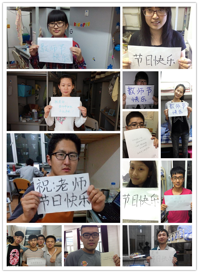 9月10日,为庆祝第30个教师节的到来,化工公司的同学们本着“隆重、热烈、简朴、温馨”的原则开展了“笑脸送祝福”活动。同学们将自己对老师的祝福写在纸上,并且拍下了自己最真挚的笑脸,希望以这样的形式来传达自己对教师衷心的感谢以及美好的祝福。 活动期间,公司收到个人以及集体照片共计113张。所有祝福已通过化工团委分享至人人网公共主页上,并引起了同学们的广泛关注,化工公司的同学们更是积极转发,希望以这样的形式引起校园内乃至其他网友对教师节的关注。“感谢在大学期间,能遇见像您这样好的班主任”,“为老师点赞”,“带我们超神,带我们飞”。每一张照片都是同学们心底里的声音,创意也是层出不穷。还有的同学在电脑屏幕上精心制作了“教师节快乐”字样,代替纸张来拍照。 化工公司的全体同学为所有的老师献上了一份最特别的礼物,也表达了化工公司对所有教职工最真挚的祝愿。