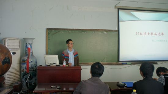 9月16日,化工公司新老生交流会暨第七届研究生会选举招新活动在理学楼901举行。会议由研究生协理员王玉楠老师主持。 第六届研究生会主席孔文杨介绍了研究生会各部门的主要职责以及上一学年所举办的各类活动和取得的成绩。各部部长分别就本部门的职能和曾举办的活动为大家做了详细介绍。 在接下来的第七届研究生会主席团及各部部长竞选中,参选的同学们都做了充分的准备,均对竞选部门做出了规划,具有饱满的热情和较强的综合素质,候选人的演讲形式多样、构思新颖、魅力独特,赢得了老师和同学们的阵阵掌声。 最后王老师对上一届研究生会的工作表示肯定,同时对本届当选的同学表示祝贺,她希望当选的同学能够充分发挥自己的才能,更好的为同学成长成才提供服务。 这股新鲜血液的注入,为化工公司研究生会的发展壮大奠定了坚实的基础,同时为化工公司今后员工工作的顺利开展提供了强有力的后备力量。 化工公司第七届研究生会主席团以及各部门负责人名单如下: 研究生会主席:谷兴 研究生会副主席:南希、马春雪 学术部部长:田相军、郑香玉 组宣部部长:张芳平 文体部部长:马培培 办公室主任:吕敏兰 实践与外联部部长:张法宁