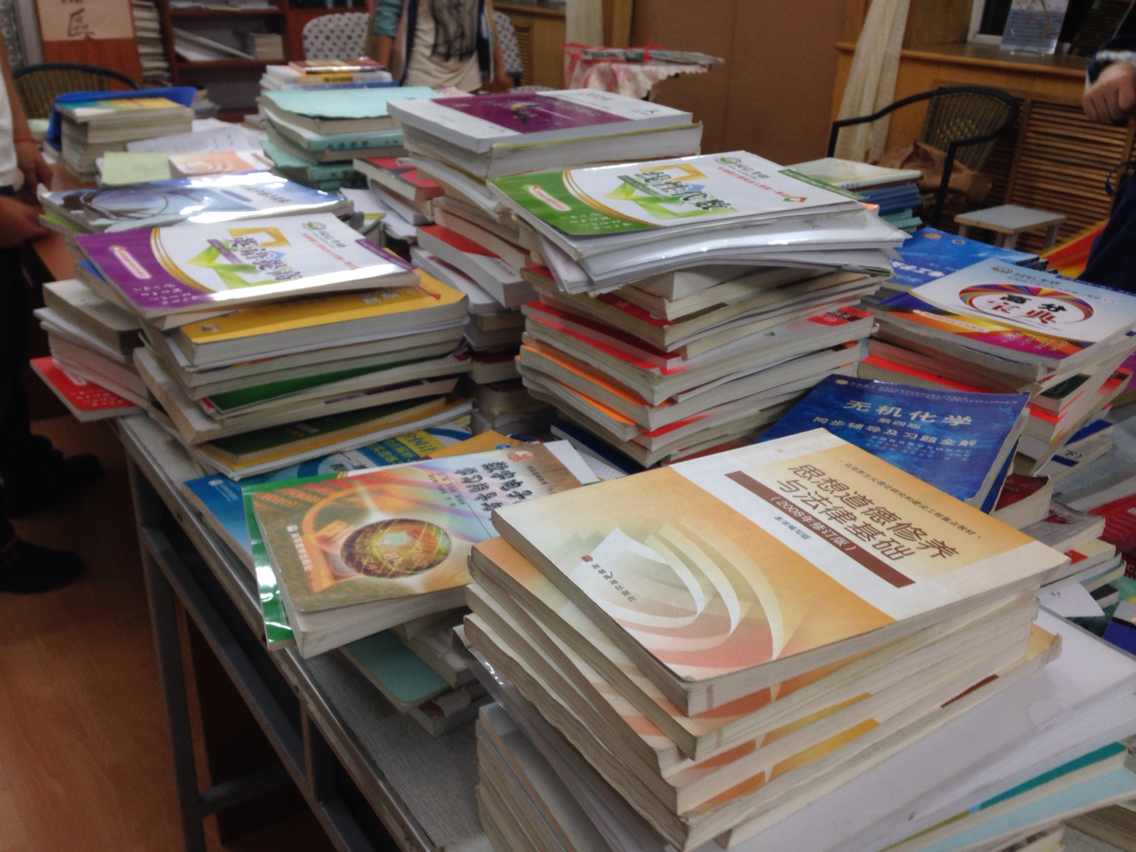 9月20日,化工公司爱之翼志愿服务团队在七公寓二楼书吧举行了 “学长火炬”大型图书捐赠活动。学长学姐们的无私捐献,既是是一种书籍的循环利用,也是一种文化和奉献精神的传承。 “学长火炬”是将毕业生留下的书籍以及资料通过捐赠的方式发放给低年级的同学,来实现书籍的循环利用。在经历了捐书动员,收书整理分类的前期准备活动之后,最终的捐书活动也如期举行。活动开始之前志愿者们先将之前整理好的书籍依次摆放在桌子上,以便大家能够方便迅速的找到自己需要的书籍和资料。此次活动主要针对本科大三和大二的同学,受益人数众多,据不完全统计,捐赠书籍有工科类基础教辅书籍257本,政治类书籍124本,化工类基础教辅书籍120余本,化工专业书籍102本,考研书籍240本,其余书籍200余本,合计1000余本书籍。同学们纷纷表示能在活动中领到合适的书籍,非常支持这样的活动的举办。 授人玫瑰,手有余香;奉献爱心,收获希望。同学们的一次善举,更将换回一个心灵的快慰。书的价值能够最大化是我们的追求;同学们对知识的如饥似渴,是我们的欣慰之处。感谢学长学姐们无私的捐书,此次活动才能这样成功!你们的“火炬”,已经交接到了学弟学妹们的手上,我们会继续把它传承下去。