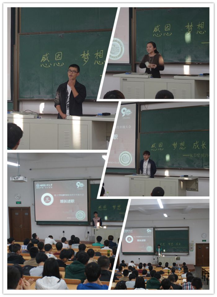 9月18日下午,化工公司2013级本科生以“感恩·梦想·成长”为主题的年级大会在正心楼11教室成功召开。2013级本科生辅导员李宏涛、2012级本科生党支部党员代表和2013级全体本科生出席了本次大会。 本次年级大会以央视新闻频道特别报道“校训是什么”开场,视频中介绍了校训“规格严格,功夫到家”的由来,也讲述了一代又一代的哈工大人秉承这一铁律砥砺前行的故事。同学们聚精会神地观看,对母校历史和校训精神有了更深的认识和理解。 辅导员李宏涛老师围绕“感恩·梦想·成长”的主题,结合自身的老员工活和感受,进行了主题演讲。他借摄影师的视角,向同学们展示了哈工大独特的魅力,以校园生活、身边的人为载体,希望同学们在日常生活中心怀感恩。同时,他肯定了每一个人都有梦想,也向同学们提出珍惜老员工活,心怀感恩、追逐梦想、不断成长的期待。 在热烈的掌声之后,新当选的各小班班长进行了述职。在对上一学年的学习成绩、班级建设等方面进行总结之后,各位班长还分析了班级存在的不足,并根据班级特点提出了本学期努力的方向与目标。每位班长述职后,同学们都报以热烈的掌声,表示定会积极支持班级建设,为公司发展助力。 2012级本科生党支部赵翔,针对大二学年的重点课程进行了分析和指导。他分门别类地进行了学习经验介绍,推荐了相关参考书籍,并强调保证课堂学习效果、及时做好预习和复习的重要性,为2013级的同学们提供了切实有效的帮助。 辅导员李宏涛老师对公司发展历程、学科设置、相关研究领域等进行了详细介绍,他还对安全健康、党员发展、评奖评优、寝室卫生、邮件礼仪等进行了重点强调,帮助大家尽快熟悉并融入化工公司的大家庭。 年级大会上还发布了化工公司2013级本科生的徽章和“成长2013”的年级宣言,二者相辅相成,增强了年级的凝聚力和向心力,激励同学们不断前进。 年级大会结束后,同学们纷纷写下自己想说的话,有的表达自己的感想,有的表明努力的目标,有的为年级和公司献计献策。辅导员老师将对同学们的想法和建议进行整理和汇总,并有针对性的开展相关工作。 本次年级大会由2012级本科生党支部策划和组织,主题鲜明,形式创新,内容深刻,让刚刚步入大二的同学们能更快地熟悉公司和公司,找准前进的方向。也相信同学们能秉承校训精神,心怀感恩,追逐梦想,不断成长,拥有更加美好的未来。 (一)同学们认真观看视频“校训是什么” (二)同学们被视频中关于校训的故事深深地感染着 (四)“感恩·梦想·成长”辅导员主题演讲 (八)年级大会后同学们写下的感想和建议 |