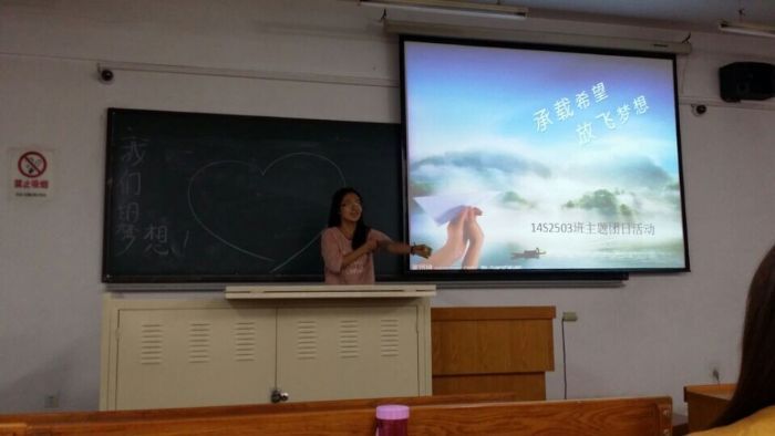 9月29日晚,化工公司14S2503班在诚意楼406教室开展了“放飞梦想”主题团日活动。 团支部书记南希作为主持人宣布活动开始,大家纷纷在彩色的纸片上开始书写自己的梦想,不论这个梦想存在于现在还是过去。随后,她鼓励全班同学将自己的梦想贴在黑板上与之想合影留念,并将自我的梦想同大家分享。活动使同学们了解了各自的目标与追求,拉近了距离。同时,活动也帮助了那些对未来有憧憬却很迷茫的同学找到自己未来的方向。最后,南希同学鼓励大家要坚定自我的梦想并将其与中国梦相结合,不断努力奋斗,她将最近很火的一句话送给了大家:“梦想还是要有的,万一实现了呢?” 相信每一位参与活动的同学都将今天,记住黑板上的梦想。希望多年以后,大家的梦想都能实现。