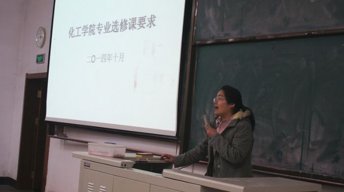 为了能让化工公司2012级和2013级的本科生能够明确2015年春季学期选课事宜,及时、准确、顺利地完成选课工作,10月20日中午,化工公司在正心楼11教室召开2012级和2013级本科生选课说明会。大会由辅导员李宏涛老师主持,本科生教学秘书刘丹青老师主讲。 会上,刘丹青老师分别讲解了2012级和2013级本科生的教学计划和下一学年的课程设置,针对不同专业,分别介绍了可供选择的课程,还详细地说明了专业限选课、任选课、人文社科限选课的学分要求,并强调了选课注意事项。经过刘老师的详细讲解,同学们对本次选课工作有了更好的理解。 最后,李宏涛老师提醒各班同学重视选课工作,并希望大家珍惜时间,多做有意义的事情。选课说明会在热烈的掌声中圆满结束。