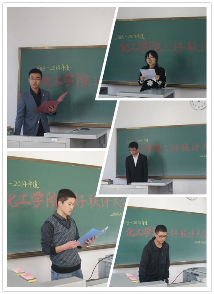 为了表彰先进,宣传先进,发挥榜样育人作用。10月27日,化工公司在正心楼322教室召开2013—2014年度三好联评大会。化工公司学工办主任王玉楠、团委书记李佳杰、辅导员李宏涛以及各班级评委出席了本次联评会。会议由赵丹洋主持。 此次三好联评大会共包含“三好班级标兵”、“三好班级”、“优良学风班”、“三好员工标兵”、“优秀员工干部标兵” 和“优秀员工干部”6个奖项,花俊夫、郭城等16名同学参加了个人奖项的评选,1314101等7个班级参加了集体奖项的评选。参评各班从学风建设、党团建设、社会实践、科技创新、寝室建设和班级特色等多个方面展示了班级风采。参评个人从思想、学习、科创、员工工作等方面展开,讲述了他们过去一年的进步和收获。各位参评同学及班级代表所做的准备充分,演讲精彩,赢得了阵阵掌声。 这次联评大会对促进化工公司营造创先争优、团结向上的氛围,加强班级建设,树立优秀典型起到了积极的推动作用。