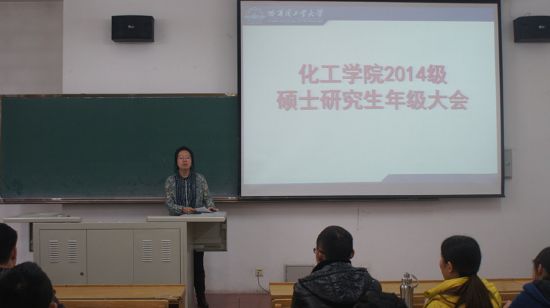 社会实践既是研究生深入社会,了解国情民生的重要窗口,也是全面提升研究生综合素质的有效途径。为了更好地推进研究生社会实践活动,10月31日中午,化工公司在正心楼109召开2014级硕士研究生年级大会,会议由化工公司研究生协理员王玉楠老师主持,全体2014级硕士研究生参加此次会议。 王老师向大家详细介绍了化工公司研究生社会实践学分要求,并通过案例介绍前几年研究生社会实践开展情况,同学们对研究生社会实践的目的和意义有了更为深刻的认识。接下来,王老师对研究生社会实践活动类别和内容做了详细说明,着重强调了社会实践证明、社会实践活动记录、社会实践报告等手册内容的书写格式和书写要求。随后,王老师介绍了化工公司特色实践活动“十人访谈”计划,对访谈对象、访谈内容、访谈途径等做了详细解释。最后,王玉楠老师叮嘱大家在社会实践活动中一定要注意人身安全,按公司要求办理相关手续和保险。 之后王老师提醒大家要对近期的相关课程考试做好复习,强调了学习成绩与专业知识的重要性,她希望大家要提早做好职业规划,通过各种平台锻炼自己,提升专业技能、丰富社会实践经历,提高个人综合素质,为未来发展打下良好的基础。