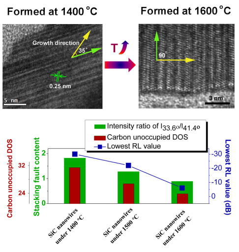 近日,化工公司14级硕士研究生员工张航宇和王欢分别以第一作者在英国皇家化学会《材料化学C》、《材料化学A》(影响因子分别为6.6)发表了题为《SiC纳米线吸波性能对堆垛层错和未占据轨道能量状态的依赖性》(《Stacking fault and unoccupied densities of state dependence of electromagnetic wave absorption in SiC nanowires》)和《共价作用大幅增强SiC/Co异质复合纳米线吸波性能》(《Covalent interaction enhanced electromagnetic wave absorption in SiC/Co hybrid nanowires》)的论文。两篇论文综合运用了表面化学、结构化学、材料学、固体物理、电介质物理和电磁学等知识,讨论了SiC基电磁波吸收材料微观结构与性能之间的关系。两名员工的指导教师为化工公司青年教师王志江副教授/博导。 SiC在上个世纪即被作为电磁波吸收材料,但是其吸波性能的调控、微观结构与吸波性能之间关联本质一直未得到很好的解决,张航宇的研究,利用同步辐射技术对SiC纳米线材料的电子结构进行了深入解析,明确了微观结构与吸波性能之间关联本质,发现提高SiC堆垛层错密度导致碳未占据轨道能量状态的提高,从而提高了SiC对电磁波的吸收能力。相关内容请参看: http://pubs.rsc.org/en/content/articlepdf/2015/tc/c5tc00405e 单一介质材料往往对高频电磁波呈现良好的吸收能力,但是在低频吸波性能较差,王欢的研究利用化学镀的方式使Co纳米粒子在SiC表面原位行核、生长,形成SiC/Co异质复合结构,通过对电子结构解析发现,SiC纳米线与Co纳米粒子之间通过Si-O-Co化学键共价结合在一起,电子在SiC与Co之间发生了流动和重新分布,改善了材料的介电常数和磁导率,最终使得SiC/Co复合纳米线具有明显高于SiC、Co物理混合的吸波性能。相关内容请参看: http://pubs.rsc.org/en/content/articlepdf/2015/ta/c5ta00303b