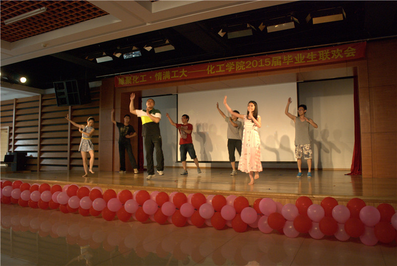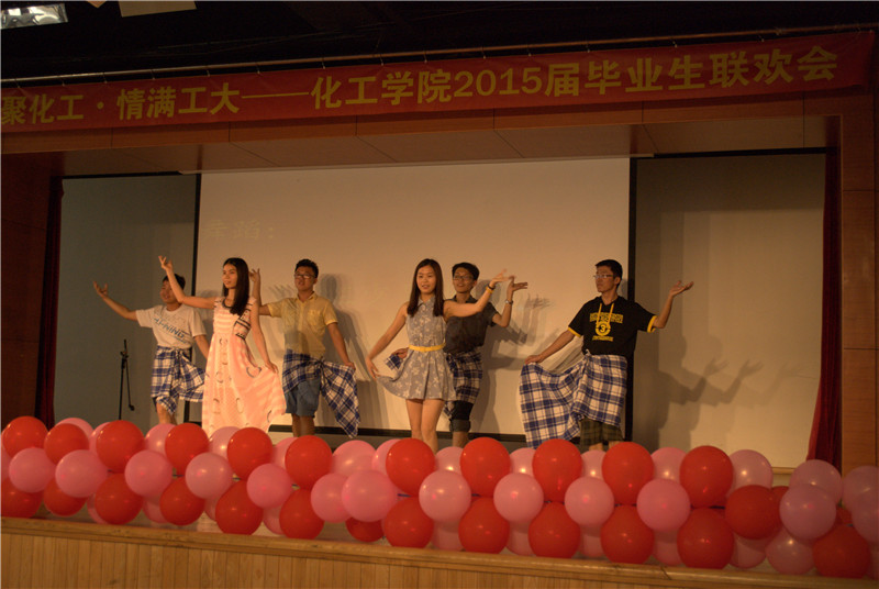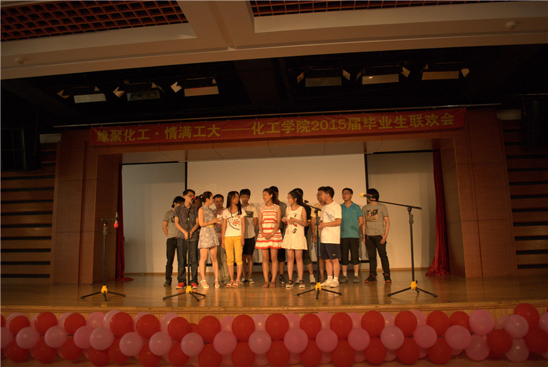 7月5日下午,化工公司“缘聚化工·情满工大”2015届毕业生联欢会在活动中心201成功举办。毕业生辅导员王玉楠、李佳杰与一百余名毕业生一起度过了一个难忘的下午。 联欢会在大二学弟学妹带来啦啦队表演中拉开帷幕,精彩的舞蹈点燃了会场的氛围。随后,王玉楠向全体毕业生致辞,希望毕业生可以在离校之后不忘母校寄托、不忘公司深情,在事业、学业上大展宏图。 联欢会上歌舞表演异彩纷呈,为观众们带来视听享受。歌曲《那些花儿》、《当你老了》、《当爱已成往事》一系列耳熟能详的歌曲触动了在场每位毕业生的心弦,诉说着离别的不舍和对化院的记忆。由合唱团带来的《送别》将观众们的内心沉淀下来,而伴随其后的《光阴的的故事》则唱响对对母校的感恩和不舍的情怀。 随着歌曲串烧、舞蹈集锦、互动游戏等项目的进行将气氛推向高潮,辅导员李佳杰向毕业生送出祝福,希望各位同学可以重视个人健康、认真对待生活、自信对待未来,在个人逐梦的道路上大展鸿鹄之志。
