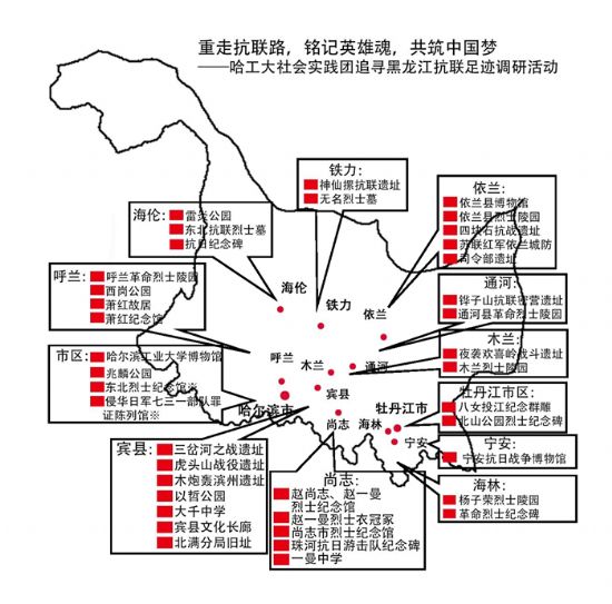 重走抗联路,铭记英雄魂,共筑中国梦 ——哈工大化工公司暑期社会实践团追寻东北抗联足迹调研活动纪实 2015年是中国人民抗日战争胜利暨世界反法西斯战争胜利70周年。在那段峥嵘岁月里,在这片广袤的黑土地上活跃着一支由中国共产党领导的抗日武装,那就是东北抗日联,他们孤悬敌后,爬冰卧雪,浴血奋战,有力地牵制了侵华日军,为抗日战争的胜利做出了巨大贡献。为进一步了解东北抗日联军的抗战历史和英雄先烈的丰功伟绩,传承抗战精神,欢迎来公海欢迎来到船701化工公司1214212团支部组建重走抗联路社会实践团,团支部13名同学分成3个实践小组,以东北抗日联军在黑龙江省的几大战场为主线,完成了对黑龙江省4个地级市下辖的12个县市区的36个博物馆、纪念馆、遗址、陵园等的参观调研,完成了6位抗战老兵和1位抗战英雄后代的访谈交流。 一、寻觅抗联足迹,发掘战争烙印,实践团整装待发 依据东北抗日联军在黑龙江省的几大战场,深入挖掘抗联在白山黑水间活动的足迹,团支部多名同学组成背景调研小组,查阅抗日战争及东北抗日联军的相关资料,将散落的碎片一一拼接。小组同学通过查阅史料、参看名人传记、搜集展馆资料等多种方式,经过近半个月的群策群力,小组成员对所查资料反复争论,最终绘制了一条涵盖哈尔滨、绥化、牡丹江、伊春等地的路线图,连接起了36个具有历史纪念意义的场馆和遗址。 实践团出发前夕,团干部们为了让全支部同学更加深入认识此次调研的重要意义,邀请班主任和辅导员在哈工大博物馆的光荣革命与传统展厅为实践团举行了出征仪式。在展厅中图片和文字的共同演绎下,一大批哈工大人积极投身抗日爱国运动的精神激励着团员青年。在接过旗帜后实践团团长郎青·额尔德尼激动地讲到:“瞻仰革命先烈的英勇事迹,带给我们大家的是由衷的敬仰和感动,在感怀之余我们更要通过此次调研将这些英雄的精神传承下去,用我们的实际行动为中华民族的伟大复兴贡献一份力量!” 二、走入场馆遗址,对话抗联英雄,实践团体悟历史 实践团分赴全省各地开展调研活动,历时近1个月,行程超过3000公里,涵盖了哈尔滨市区和市辖的宾县、尚志、呼兰、依兰、通河、木兰,牡丹江市区和市辖的宁安、海林,伊春市区及市辖的铁力,绥化市区及市辖的海伦等12个县市区。 团员们用脚步丈量战斗遗址的距离,用纸笔记录抗战史实的真实感动,先后拜谒了杨子荣、赵一曼等革命烈士的陵园,参观了宁安市抗战博物馆、七三一部队罪证陈列室等展馆,寻访了欢喜岭战斗、铧子山密营等抗战遗址,走进了一曼中学、海伦复员军人光荣院等其他与抗战相关的场所。在呼兰烈士陵园,面对护园老夫妇19年的坚持守护,团员们满怀敬意;在萧红纪念馆,面对英雄在苦难中顽强抗争的故事,团员们热血沸腾;在虎头山和三岔河,面对近乎消失的遗址,团员们充满忧虑;在七三一罪证陈列室,面对触目惊心的铁证,团员们痛心疾首。同学们深入了解了发生在白山黑水间的抗联故事,加深了对抗战英雄的敬仰之情。 在调研同时,实践团还对省政协原副主席、歌剧《星星之火》的原型李敏、曾担任过东北抗日联军营长的陈贵三等七位抗联英雄进行了采访。老人们结合自身经历热情地与小组成员进行了交流,讲述战斗经历,回顾参军体会,结合他们近百岁的人生分享了生活感悟并对大家提出殷切期望。在真诚的话语和坚定的眼神中,团员们读到了老英雄们对党、对国家、对人民的忠诚,深受感动和鼓舞。“一定要热爱国家,跟党走,做有用的人,为祖国的繁荣昌盛贡献一份力量”,团员们也将会把这种期待转化为前行的动力,努力学习和成长。 三、总结实践体会,砥砺青年前行 ,实践团立志成才 为更全面深入地记录每一日的行程与感受,实践团采用每日“一总结、一讨论、一感悟”的工作模式,各小组及时将参观调研的资料进行整理和分析,先后形成了近5万字的实践纪实和万余字的总结报告,以及60余条团员心声感悟,详细记录了各组的实践情况和团员们的真实感触,并结合实际讨论分析,为当地抗联遗址的保护和抗战精神文化的传承建言献策。 团员青年吴李斌在完成宾县调研后表示:“值抗日战争胜利70周年之际,我们开始了‘重走抗联路’之旅。在这一天的调研中,我们被感动、被震撼、被熏陶。一座座遗址无声地告诉我们战争的惨烈。作为当代的老员工,一名共产党员,我会牢记英雄们的无畏精神和伟大事迹,把对英雄们的无限缅怀和对英魂的不尽敬仰,化为现实中不懈奋进的动力,做一个对社会有用的人。” 团员青年张荣钊在完成铁力调研时,感慨道:“英雄先烈保卫自己的家园不受破坏,保护自己的同胞不被欺凌。这种小我的保家情怀在一次次的革命斗争中慢慢上升为卫国情怀,最终凝聚成为一种不怕牺牲,敢为人先,艰苦奋斗的革命精神,而这种精神也恰好是我们要继承和发扬的。” 化工公司员工团委副书记李睿楠在祭扫赵一曼衣冠冢时感触万千,她回忆道:“在参观的时候遇到一位老人在给他的孙子讲述日本侵华的罪行,这一场景给了我很深的触动。孩子就是一个国家的未来和希望,爱国主义教育应当成为最重要的环节之一。此外,还要加强抗战精神在老员工群体中的宣传和传承,提升当代老员工的民族自豪感,增强责任意识,肩负起实现中华民族伟大复兴的历史使