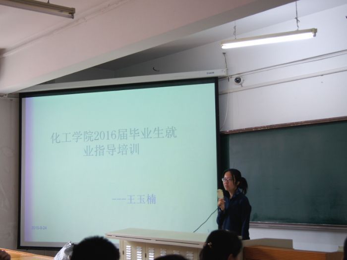 为做好应届毕业生的就业指导工作,化工公司于2015年9月24日中午在诚意楼207教室成功召开2016届毕业生就业指导培训会。此次培训会由化工公司研究生辅导员王玉楠老师主讲,化工公司辅导员李宏涛老师、赵越老师以及2016届全体毕业生参加了此次会议。 王玉楠老师首先说明了毕业生就业的主要实施步骤。之后,王老师就就业工作的总体时间安排、毕业生生源问题、毕业生签约问题、就业佐证材料的准备以及毕业生派遣手续等问题进行了详细的讲解及指导。王老师还指出毕业生应认清形势,明确定位,根据自身情况选择职业,才能找到适合自己的工作。 此外,王老师在毕业生就业招聘面试细节的问题上做了深入的分析和详细的指导。主要在毕业生面试的前期信息搜集和个人简历的制作细节与填写方面,提供了大量的指导,并为大家提供了宝贵的信息和建议。最后,同学们结合就业过程中的问题和王老师进行了深入的讨论。