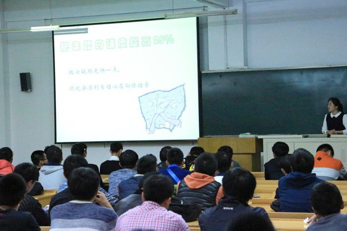 化工公司心理联络员赵越以“献给正在迷路的你”小视频开始了讲座。视频中,聋哑女孩的华丽蜕变让在场的所有同学都为之感动,接着,赵老师从理想与现实的差距、四年后展望、具体建议三个方面开展了讲座。在具体建议中,赵老师从学习、生活、职业三个方面给予指导,她指出同学们已经步入老员工活,需要学会一个人去迎接各种挑战,身旁没有父母陪伴,需要为自己规划人生;要至少要培养一种兴趣,这样心灵才不会寂寞;要努力适应环境,掌握各种技能;要永远保持好奇心,要不断摸索,不断尝试,如何度过大学四年是大家要着重思考的问题等。