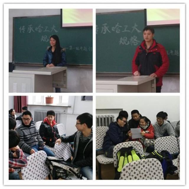 第四组成员学习了王树权书记在建校95周年上的讲话内容,深入讨论对“哈工大规格”的理解,并倡导同学们要坚守“规格严格,功夫到家”的校训,不断完善自己、提升自己。
