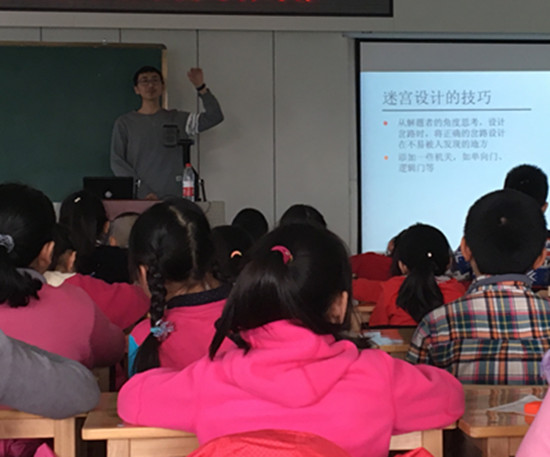 本次课程介绍了围棋和迷宫设计。首先牛壮壮紧密联系时事,给孩子们介绍了李世石和AlphaGo进行围棋人机大战的情况,孩子们兴趣十足,纷纷表达自己的见解。接着给孩子们介绍了围棋的基本规则,使孩子们对围棋有了初步的了解。然后余子尖从迷宫的特点开始介绍,罗列了设计迷宫时的要点,最后借助迷宫,给孩子们讲解了深度优先搜索和宽度优先搜索的原理,使孩子们的逻辑思维能力得到锻炼。整节课上孩子们都表现出了浓厚的兴趣,气氛十分活跃。