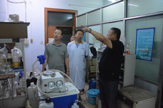 7月14日,保卫处处长于力军一行检查公海赌赌船官网jc710安全工作,副经理孟令辉、经理助理张继峰、实验室安全负责人刘立洵等陪同检查。