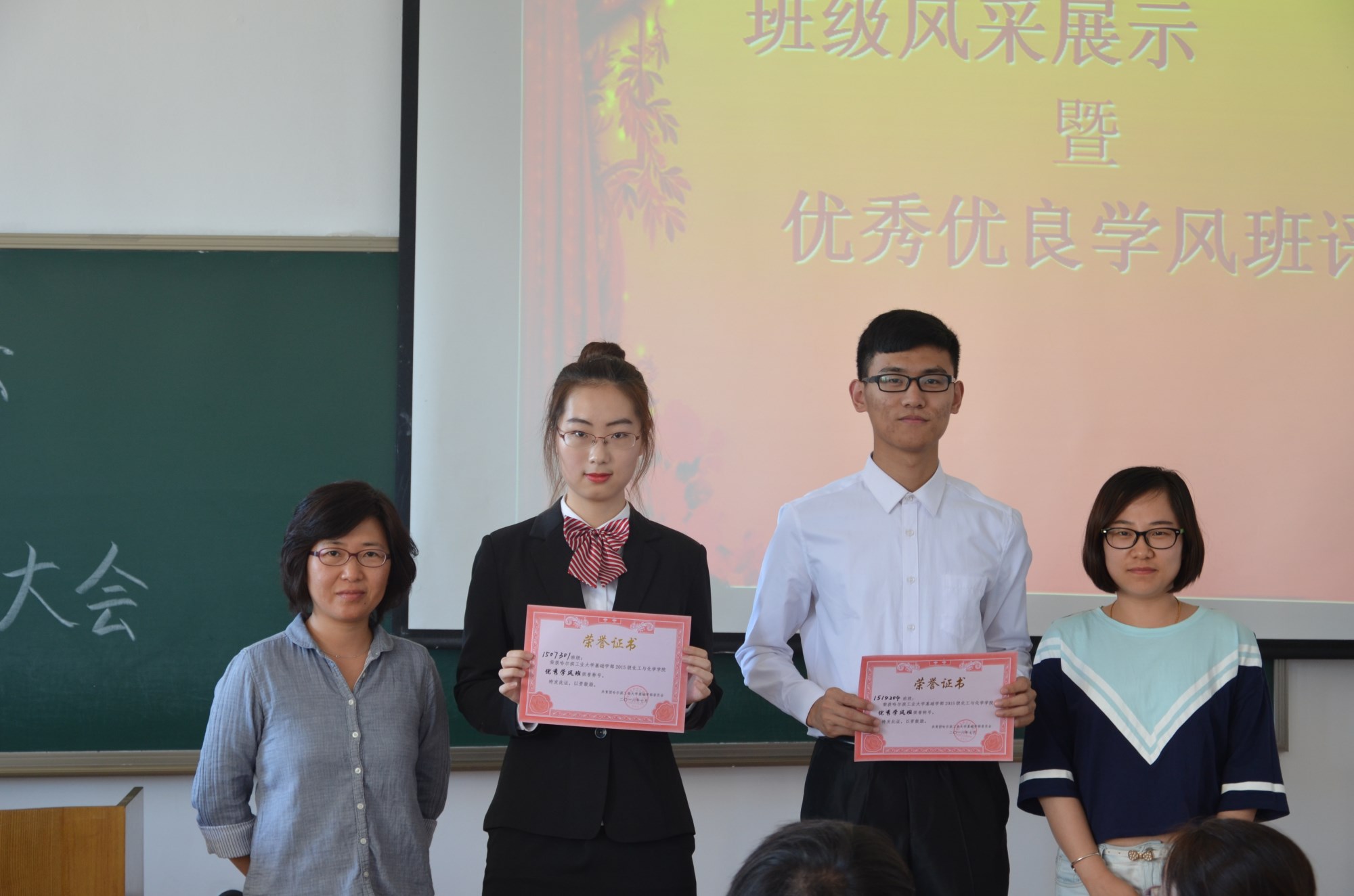 主持人首先介绍了活动的评选细则、流程及奖项设置,力争做到整个评比过程公开公正。随后各小班进行了精彩的展示,展示从学风建设、党团建设、班级体育文艺文化、班级情感氛围等四方面入手,展示出2015级各小班每个小班的风采。自主设计的班徽、激昂的口号、默契的合作都展示着各小班团结向上、锐意进取、争创优秀学风的精神面貌。每次的展示都体现着班级同学对创建优秀学风的坚定信念和对未来老员工活的憧憬向往。经现场统计,最终,1514204和1507301小班获得院优秀学风班荣誉称号,1507301、1514101、1514601小班获得优良学风班荣誉称号,其他小班也分别获得精神文明班荣誉称号。