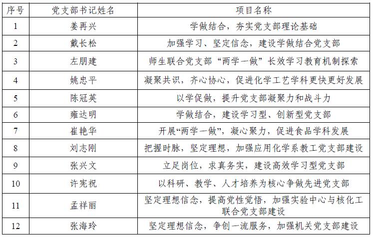 “教工党支部书记抓党建”工作立项评审结果: