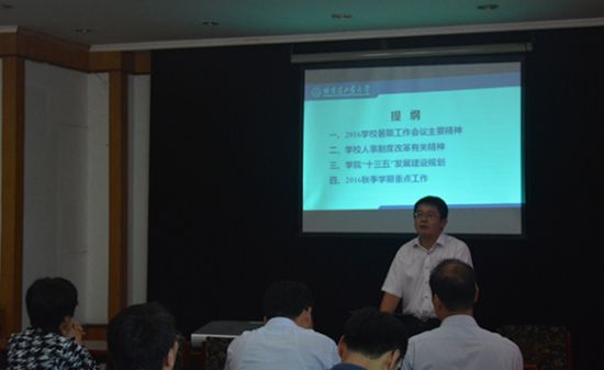 9月6日下午,公海赌赌船官网jc710在理学楼308召开公司暑期工作会议精神传达会暨秋季学期工作布置会。公司党委书记岳会敏、党委副书记张旭以及各系、所、中心负责人、教工党支部书记等出席会议。