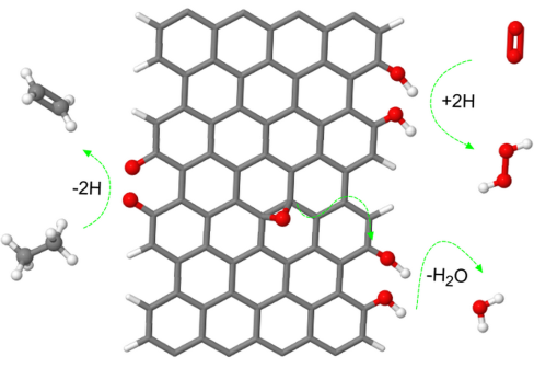 图1. 在石墨烯上进行乙烷氧化脱氢反应过程的示意图