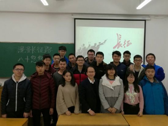 11月18日,在二区主楼B512,公海赌赌船官网jc7101614303班围绕“纪念长征胜利80周年”开展主题班会,班级院领导联系小班责任人经理黄玉东教授、班主任宋英教授、辅导员刘文超老师参加,团支部书记帅琦主持。