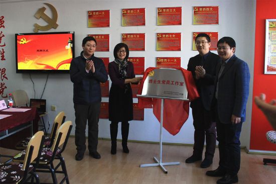 研究生院副经理、研工部部长孟繁东,组织部副部长王雷等嘉宾为工作室进行揭牌。参会师生在党员工作室合影留念。