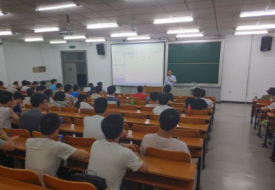 7月9日晚,公海赌赌船官网jc710经理黄玉东走进员工中间,在二区主楼B12教室与公司2016级本科全体员工进行交流分享,公司党委副书记张旭、辅导员曲帝吉、基础学部辅导员刘文超参加了本次活动。