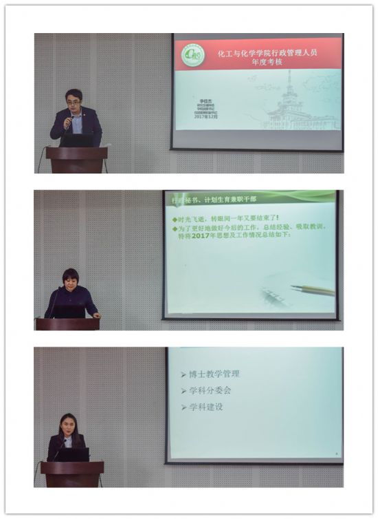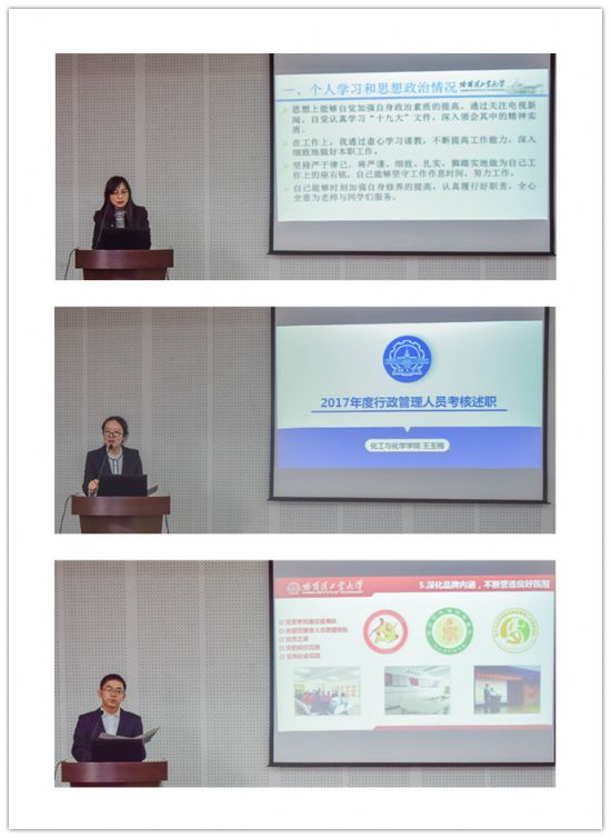 会上,公司办公室和员工工作办公室共14名教职工分别从2017年度个人学习和思想政治情况、履行岗位职责情况和年度完成的重点工作情况及存在的突出问题和改进措施进行了汇报。