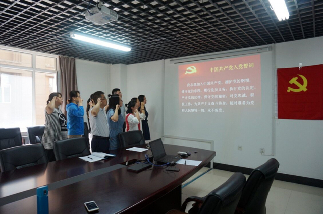 最后,支部成员在党旗下庄严宣誓,共同重温入党誓词。