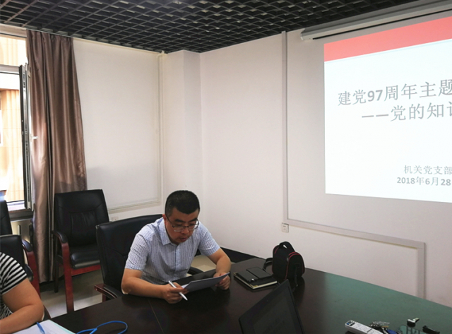 6月28日上午,公海赌赌船官网jc710机关党支部在明德楼C818会议室召开建党97周年主题党日活动,活动由公司机关党支部书记张海玲主持。