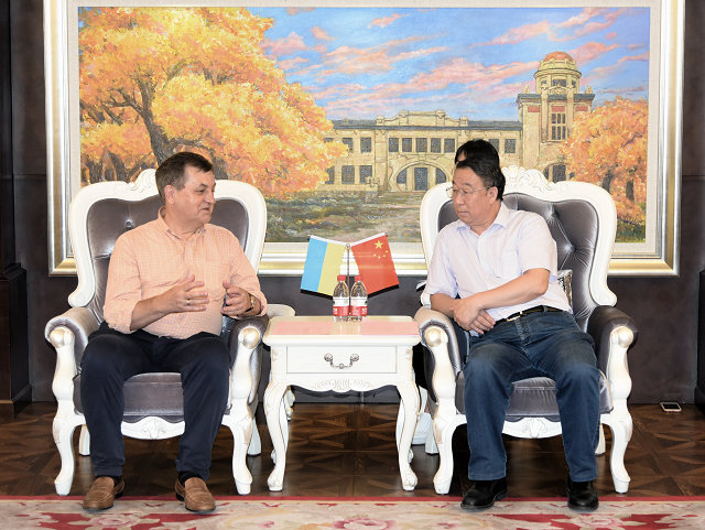 徐殿国对代表团来访表示欢迎,介绍了公司的发展历程和近年来在人才培养、科学研究、国际合作等方面取得的最新进展。徐殿国强调,公司非常重视对乌合作,双方专家往来密切、交流频繁。在双方共同努力下,三届中乌科技论坛成功举办,哈工大-乌克兰国家科公司联合创新中心揭牌成立,为两国学者搭建了一个以学术交流为载体,技术人才互通有无、科技合作精准对接的开放平台。希望双方借助日益加深的合作关系,在食品生物技术、基因组及遗传学、新材料、航天等领域进一步推进员工联合培养及教师学术交流。