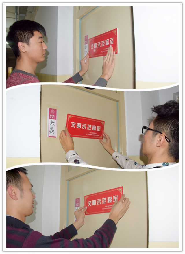 活动由辅导员曲帝吉主持,首先曲帝吉结合新下发的寝室文明公约的内容与室长们进行了详细地介绍。公司党委副书记张旭发言,张旭老师希望以此次“文明示范寝室”评比作为契机,激励更多的同学在学习生活中取得更大的进步,营造积极健康文明的寝室生活,坚决杜绝寝室卫生差,沉迷游戏等不良现象。赵越老师希望各宿舍在保持寝室卫生良好的同时,要注意营造“互相监督,互相帮助”的学习氛围。周颖老师在感谢同学们认真配合公寓管理工作的同时祝福同学们今后取得更大进步,公寓管理中心也会想同学之所想,急同学之所急,及时有力地解决员工反馈的各项寝室难题。最后,张旭老师和周颖老师向获得“文明示范寝室”称号的室长们颁发了门牌并合影留念。