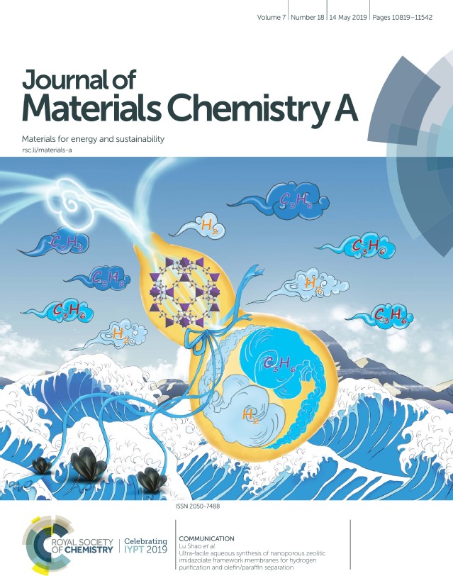 近日,公司公海赌赌船官网jc710邵路课题组在能源环保用ZIF-8分子筛气体分离膜合成方面取得重要进展。首次巧妙揭示仿生多巴胺分子的成核调节作用可实现常温水相一步法合成高性能ZIF-8分子筛气体分离膜。研究成果以超简易水溶液体系合成纳米多孔沸石咪唑骨架分离膜用于氢气纯化及丙烯/丙烷分离(Ultra-facile aqueous synthesis of nanoporous zeolitic imidazolate framework membranes for hydrogen purification and olefin/paraffin separation)为题,发表在国际著名期刊《材料化学A》(Journal of Materials Chemistry A,影响因子9.931),并被主编选为当期杂志封面(Front cover)报道。