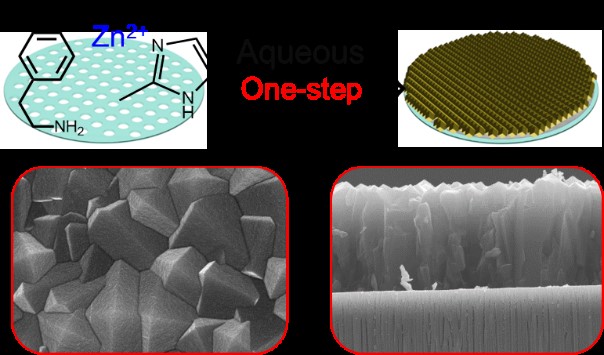 金属有机框架(MOFs)是由金属离子或金属离子团簇和刚性有机配体配位而成的一种具有高度有序的多孔结构和超高比表面结的新型杂化材料,是理想的气体储存和分离材料。由于金属离子和有机配体的复杂性和多样性,迄今为止,已经有成千上万种MOF材料被合成出来。沸石咪唑骨架(ZIFs)是一类具有沸石晶型和有序孔道的高水热稳定性MOF材料,因此成为最具研究潜力的一类MOF分子筛膜材料。ZIFs材料的另一个瞩目的优点在于它们可以在多种溶剂中合成,包括水、甲醇、N,N-二甲基甲酰胺等。ZIF-8是研究最多的一种ZIFs材料,具有极高的水热稳定性。晶体微孔直径为0.34 nm,极其适合分离气体分子。纯ZIF-8膜最早是由微波辅助的溶剂热方法在100 ℃下合成于多孔钛基底上的。目前,常用的ZIF-8分子筛膜合成方法主要是种子生长法和基底预修饰法。但这些方法往往包括较为复杂的基底表面处理,以及较为苛刻的合成条件,制膜过程中需要消耗大量能量,并产生有毒有害的废物。因此合成高性能无缺陷的MOFs分子筛膜的最大挑战在于如何采用简单绿色的方法,来精确控制MOFs在多孔基底上的异相成核。