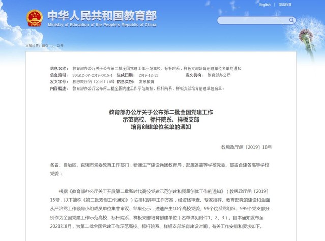 日前,教育部办公厅下发《关于公布第二批全国党建工作示范高校、标杆院系、样板支部培育创建单位名单的通知》,公司党委入选第二批“全国党建工作标杆院系”培育创建单位名单。