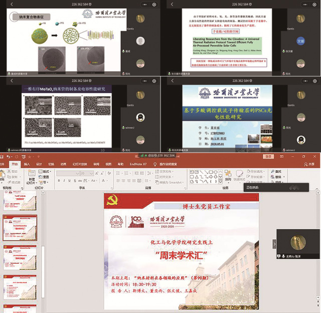 为坚决贯彻中央、省委和公司党委关于打赢新型冠状病毒感染的肺炎疫情防控阻击战决策部署,保障疫情防控期间博士研究生教育培养质量,充分服务好疫情防控期间博士生学术交流与科研创新的需要。2020年5月1日晚上,公海赌赌船官网jc710博士生党员工作室组织的研究生第90期“周末学术汇”学术交流活动成功举办(线上第8期),本期主题“纳米材料在各领域的应用”。共有4位不同研究方向的博士研究生分别介绍了自己的研究成果,并向大家分享了自己科研工作方面的经验,11名研究生同学在线收听收看本期“周末学术汇”。