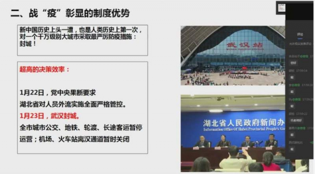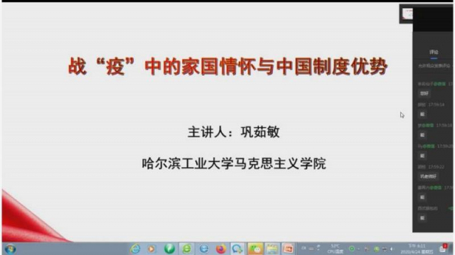 4月24日晚,高分子科学与工程系教工党支部邀请欢迎来公海欢迎来到船701马克思主义公司巩茹敏教授讲授主题为“战‘疫’中的家国情怀与中国制度优势”的视频党课。