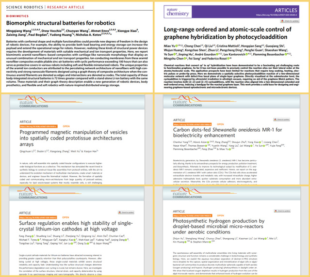 6.在Science、Nature子刊发表高水平论文6篇,在ANGEW、AM等顶级期刊发表高水平论文14篇、重要中文期刊40余篇