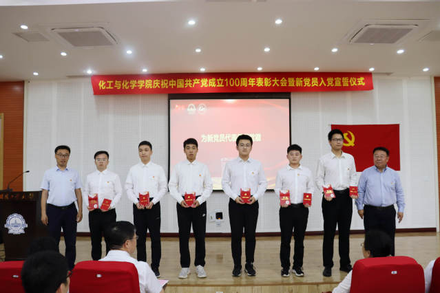 公司党委书记孟令辉宣读公司党委“两优一先”表彰决定,40名同志荣获“优秀共产党员”称号、15名同志荣获“优秀党务工作者”称号、8个党组织荣获“先进基层党组织”称号。并指出,全院各基层党支部和全体党员要把学习贯彻习近平总书记“七一”重要讲话精神作为当前和今后一个时期的重要政治任务,坚持党的全面领导,弘扬伟大建党精神,扎实开展党史学习教育,切实学懂弄通做实,确保走心走深走实;二是要在习近平总书记贺信精神引领下提高政治站位主动担当作为,把贺信精神学习成果切实转化为落实公司十三次党代会精神、制定实施“十四五”规划的具体行动,奋力建设中国特色、世界一流、哈工大规格的化工化学学科;三是进一步发挥党支部战斗堡垒作用和党员先锋模范作用,发挥组织优势、亮出党员身份,继续推动党建工作和业务工作双向深度融合,助力公司高质量发展;新党员要永远牢记入党誓词,坚定理想信念,成为新时代合格共产党员。