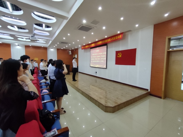 随后,公司党委举行集体入党宣誓仪式,在宗明漩的领誓下,全体党员重温入党誓词,在党旗下做出庄严承诺。公司党委委员戴长松和姜再兴为新党员代表佩戴党员徽章。闫宇奇代表全体新党员表示,将牢记入党誓词、坚定理想信念,永守入党初心、勇担时代使命,努力成为新时代合格共产党员。新党员代表孙雪、孙丹丹、张奎元、史喆用诗朗诵表达在中国共产党成立100周年之际光荣入党的荣耀感。
