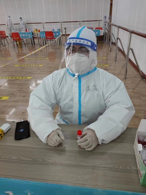 博士研究生刘峥同学说:“很高兴能够为核酸检测工作贡献自己的一份力量,同时也体会到了医护人员的辛苦,自己只做了四个小时的工作就已经感到疲惫,但是医护人员要持续工作,因此要向医护人员致以最崇高的敬意。”