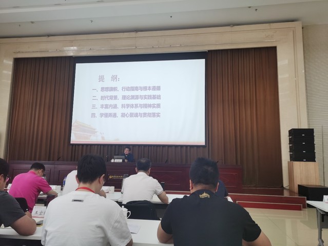 下午,全体学员参加学习了以“加强党的创新理论武装,开创事业发展新局面”为题的专题讲座,从“思想旗帜、行动指南与根本遵循”“时代背景、理论渊源与实践基础”“丰富内涵、科学体系与精神实质”“学懂弄通、凝心聚魂与贯彻落实”四个方面深入学习了习近平新时代中国特色社会主义思想。