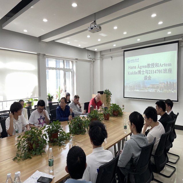 5月28日,公海赌赌船官网jc7102114701小班于明德楼C1116室召开小班班会,瑞典乌普萨拉大学Hans Ågren教授和Artem Kuklin博士做客会议,班会由班主任陈冠英教授主持。