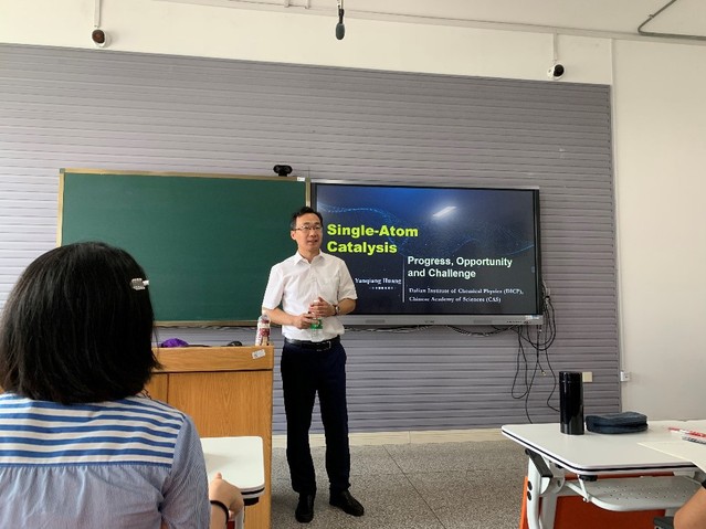 在今天的课程中,黄延强教授向同学们介绍了单原子催化剂的发展与现状,同时黄教授继续分享了单原子催化剂在CO2捕获与转化的技术以及其在环境保护和可持续发展方面的应用前景。他还详细讲解了合成气催化转化和推进剂催化分解等领域的最新研究成果,并与同学们就相关话题进行了深入的讨论。