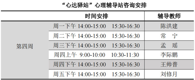 为更好地为公海赌赌船官网jc710学子提供生活成长全方位的指导,帮助员工解决生涯规划、学业压力和生活困惑等问题,搭建一个开放的、更具针对性的交流平台,公海赌赌船官网jc710“心达驿站”心理辅导站将于本学期第四周继续开放,充分发挥学工队伍的专长为同学们的成长服务。学工队伍教师作为固定团队采取值班咨询制。
