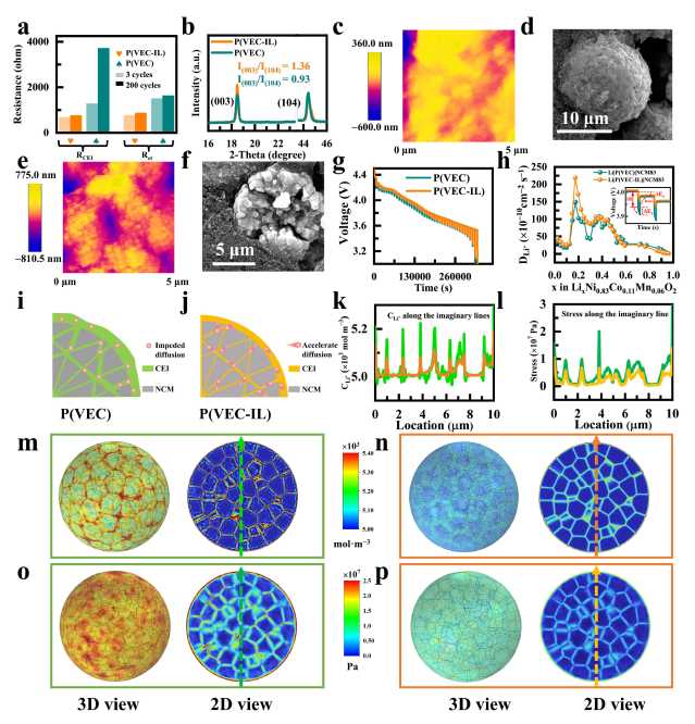 图5. NCM83阴极的结构演变以及Li+通过CEI扩散对结构稳定性影响的模型