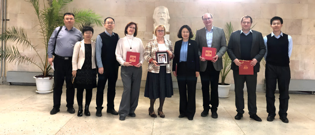 化学系主任韩晓军教授、材料化学系主任卢松涛教授、国际发展中心主任王磊副教授和化学系孙建敏教授就中俄合作办学事宜与俄方负责人进行了深入交流。