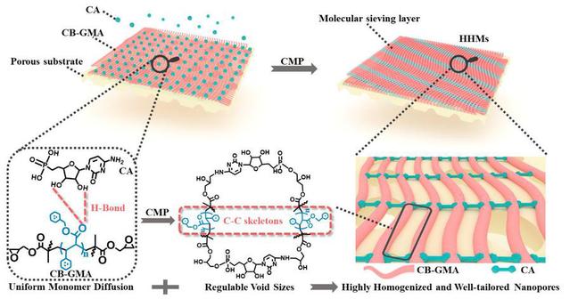 传统分离技术通常基于能源密集型相变,化学工业中的分离过程需消耗约15%的能源,基于独特的速率控制分离机制的纳米限域分离膜技术在能源效率和环境友好方面表现出明显的优势。然而,目前在调控纳米孔均匀性的同时会降低纳米孔尺寸,极大限制了水分子在膜中传输。因此,构建同时具有均质化纳米孔和可调孔径的聚合物纳滤膜极具挑战。
