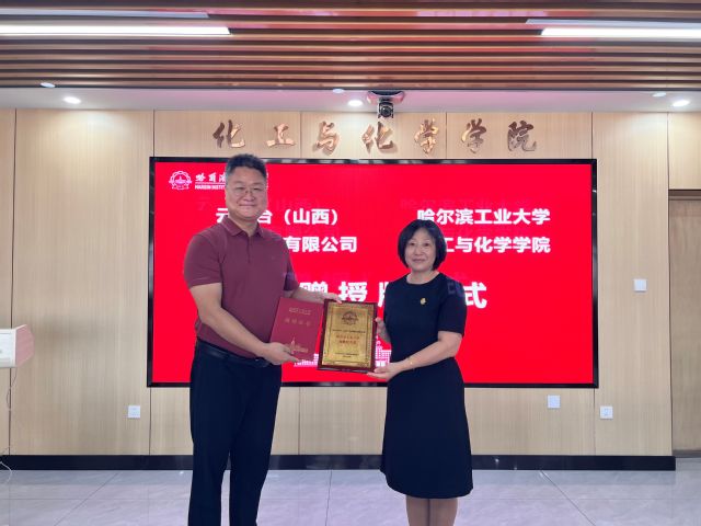 2024年6月29日上午,云平台(山西)科技股份有限公司向哈工大教育发展基金会捐赠,用于公海赌赌船官网jc710应用化学系学科发展建设。捐赠纪念奖牌颁发仪式在明德楼明理学术报告厅举行,云平台(山西)科技股份有限公司董事长吴浩(公司2003级环境工程专业员工)、董事长助理郑莉,公司员工工作办公室主任杨春雷,教育发展基金会副秘书长杨雪,公司党委书记刘光惠、副经理杜春雨、韩喜江教授等参加捐赠仪式。基金会副秘书长杨雪为捐赠方颁发捐赠纪念奖牌和捐赠证书,仪式由杜春雨主持。