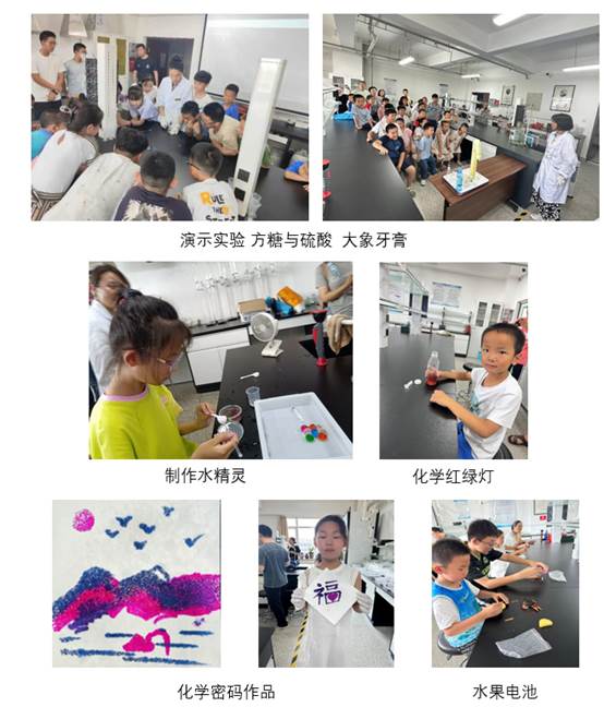 活动中,同学们积极思考老师提出的问题,不断给出自己的新想法,讨论十分热烈。同学们亲自动手做“水果电池”了解了电的传导过程、“化学红绿灯”看到了神奇的循环反应、“化学密码”体验了变色反应,“制作水精灵”拿到了晶莹剔透的实验产品,在实践中学习,体验了科学的乐趣,兴趣满满。