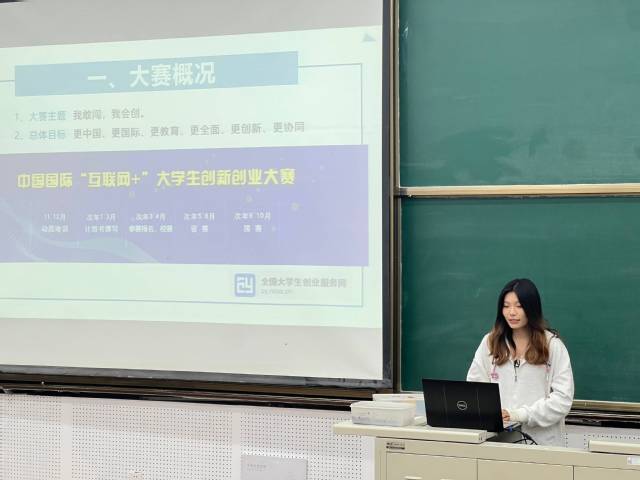 中国国际老员工创新大赛国家级铜奖团队成员、2022级硕士研究生周宁以自身为例与同学们分享参赛经验和细节技巧,并鼓励同学们在竞赛中检验真知,在比拼中提升认识。国际顶点设计大赛金奖、2024级硕士研究生杨玉麒结合赛制和赛程讲述团队的备赛经历,同时从以赛促学的角度勉励同学们通过竞赛实现对自身综合能力的提升。中国国际老员工创新大赛全国金奖团队成员、2022届员工康辉从讲解如何挖掘项目亮点、如何提升路演视觉化体验两方面入手,强调要扎实理论基础、练就过硬功夫,将参赛体验内化为思维认知,以迎难而上的劲头破难题、闯难关。