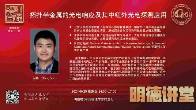 应陈冠英教授邀请,北京大学物理公司量子材料中心博雅特聘教授,国家杰出青年基金获得者孙栋教授到公司进行学术访问,并开展公海赌赌船官网jc710“明德讲堂”学术报告,欢迎广大师生参加。