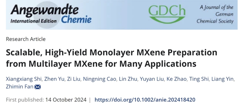 近日,空间电源全国重点实验室成员、公司副教授樊志敏带领团队在二维MXene材料规模化制备领域取得重要进展,成功开发出一种基于高温超声的剥离技术,实现了单层MXene的高效、高产率制备。相关成果以《从多层MXene实现可扩展的高产单层MXene制备及其多种应用》(Scalable, High-Yield Monolayer MXene Preparation from Multilayer MXene for Many Applications)为题发表在《德国应用化学》(Angewandte Chemie International Edition)上。该研究拓宽了MXene在智能可穿戴设备、能源器件等领域的应用前景。