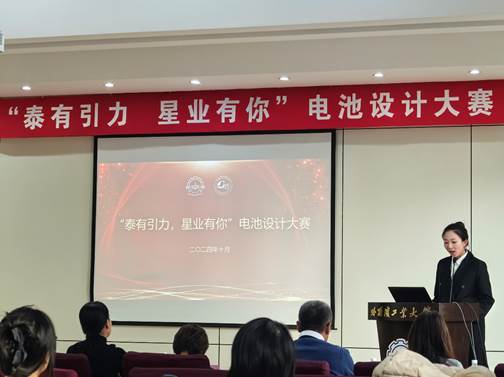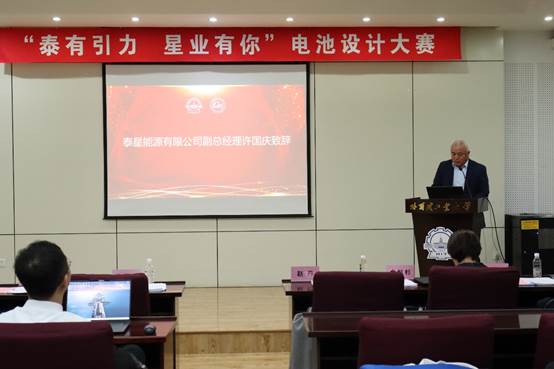 答辩会上大连泰星能源有限公司副总经理许国庆进行致辞。他表示,本次大赛是展示智慧和才华的舞台,同学们的创新思维将为行业发展注入新动力。泰星能源致力于电池领域发展,期待从此次大赛中发现优秀设计和人才,共同推动电池技术进步,让更优质、高效、环保的电池产品服务社会。